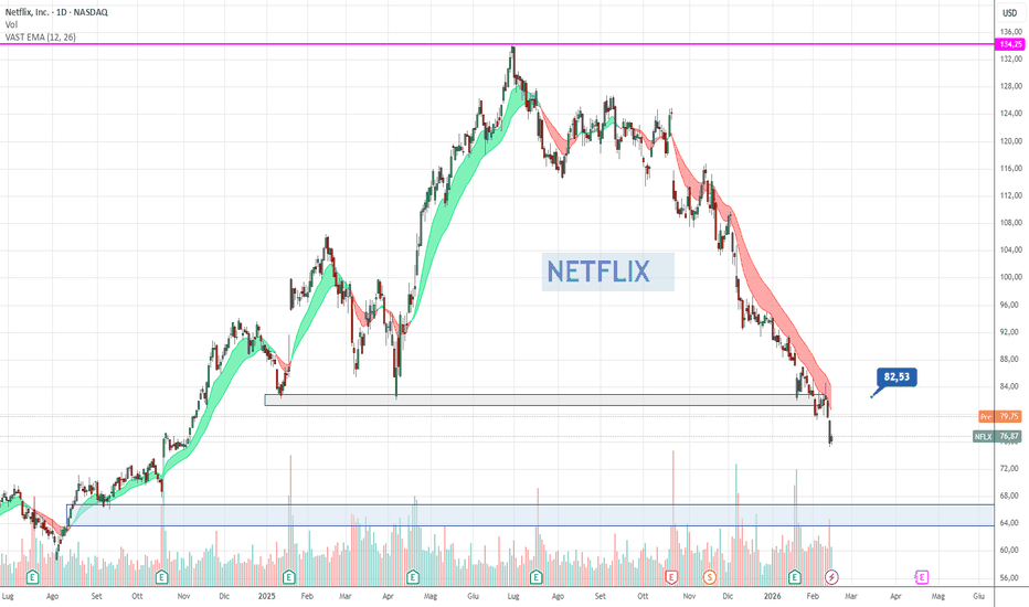 NETFLIX vs ParamountNETFLIX continua a perdere valore in borsa violando il primo supporto di 80 dollari.